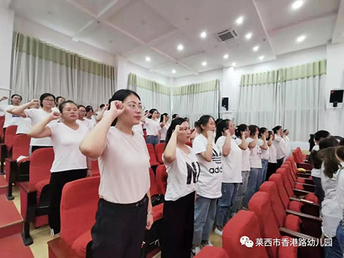 为打造党和人民满意的“四有好老师”,着力提高教师职业道德水平,在第35个教师节来临之际,香港路幼儿园进行了以“不忘初心 牢记使命”为主题的教师节表彰庆祝大会,并带领全体教师在国旗下庄严宣誓。