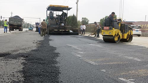 为加快南京路道路提升工程进度,市住建局市政处组织干部员工加班加点工作在工程一线,督促协调施工方加快施工。图为施工人员在南京路两侧非机动车道路铺设沥青,以劳动的热情欢度国庆。