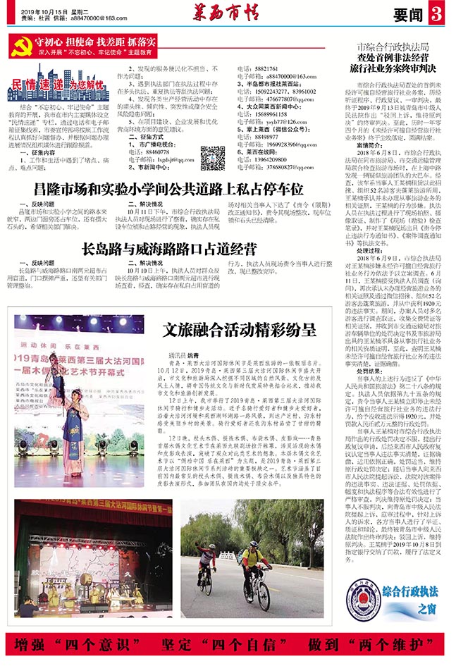 记者 原龙飞 10月11日至12日,市发展改革局、市综合行政执法局及市市场监管局等部门成立...