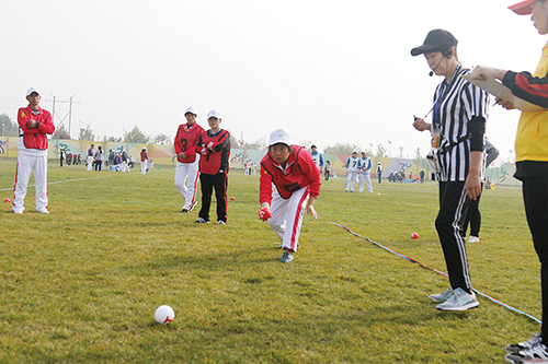 10月18日-19日,青岛(莱西)2019世界休闲体育大会高智尔球国际邀请赛在市体育中心举行。来自各地的32支队伍260余人参与竞技。