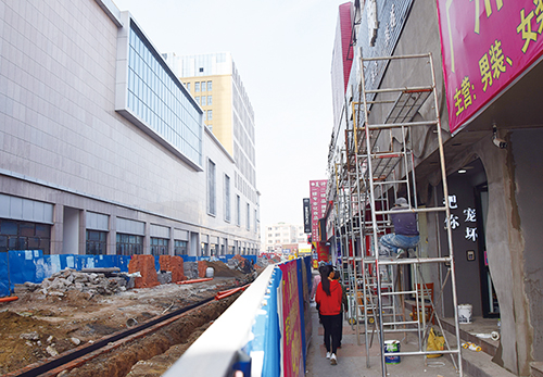 10月23日,记者在商业街改造工地看到,东西400多米的商业街已改造过半,东半部早已完工开放。“商业街工作面窄、地下管线密集,我们不仅要在12米宽的路面下铺设自来水、电力、雨水、路灯、污水管道5条管线,还要考虑减少施工对商户、市民、交通的影响,所以实行了分段施工。”在工程现场,一位工程负责人告诉记者,“工程施工不连续,施工周期相对来说就延长了,希望市民和商户能理解和支持我们。目前,西半路段正在进行地下管线、排水沟施工。”“过去下雨天路面就积水,排水都困难,政府一心为了群众,我们暂时有点不方便也值得。”看着店铺门前修好的路,一位姓刘的商户乐呵呵地说。