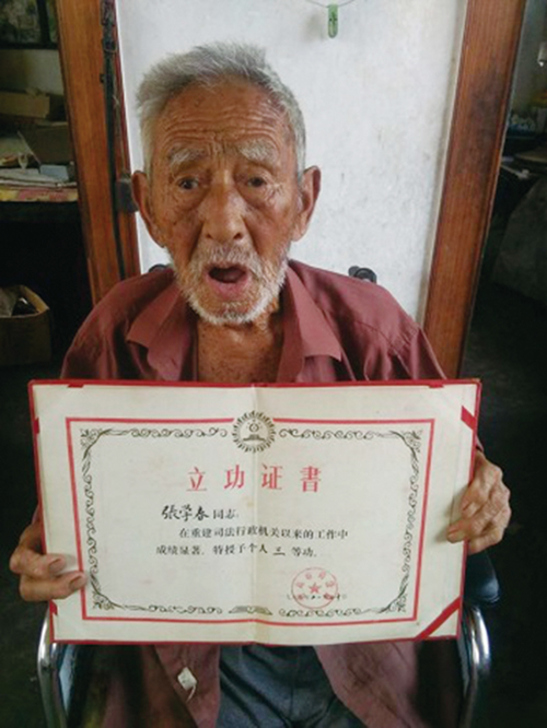 我在村里当了40多年的村干部,组织村民减租减息,进行社会主义建设,充分发挥了一名共产党员的先锋模范作用。我在和平年代和改革开放年代也屡立“战功”,“山东省司法工作三等功”“莱西县抗洪救险模范”等大大小小的证书得了一大堆。