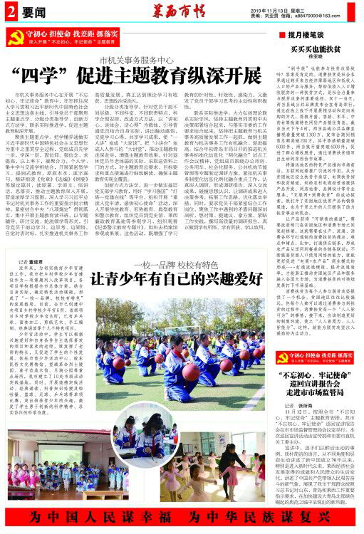 记者 原龙飞 根据“不忘初心、牢记使命”主题教育部署安排,11月1...