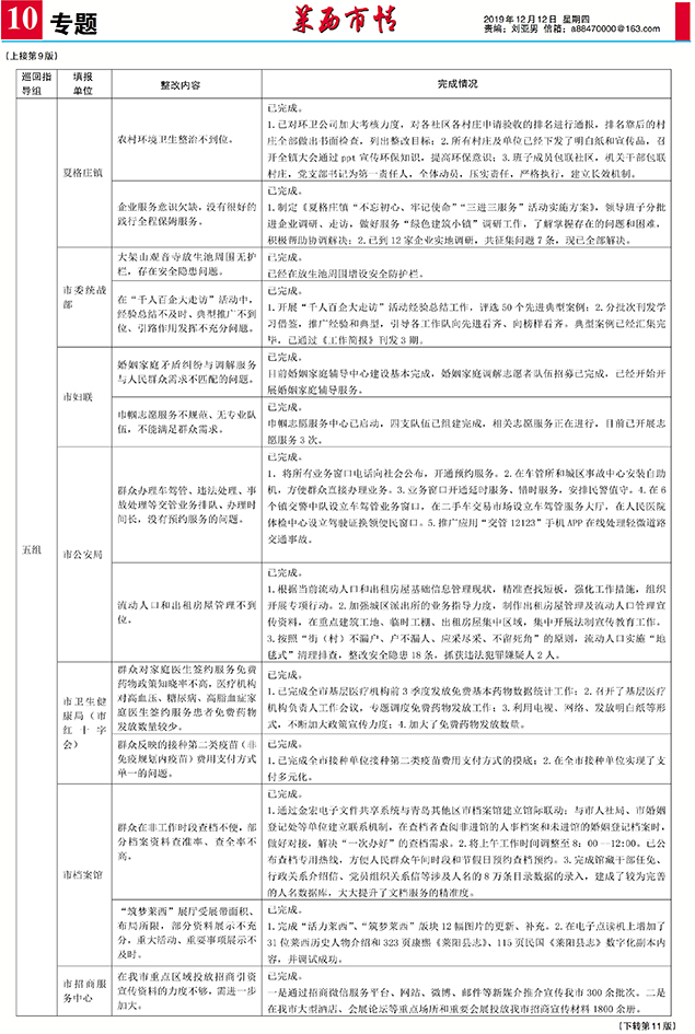 莱西市“不忘初心、牢记使命”主题教育单位近期重点解决问题整改落实情况
