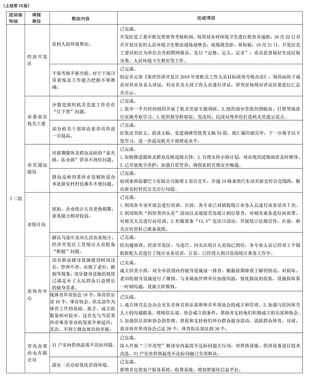 莱西市“不忘初心、牢记使命”主题教育单位近期重点解决问题整改落实情况