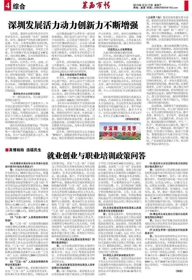 记者 张所海 12月14日—15日,2019年青岛市政府部门“向市...