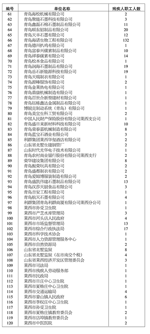 二、按照《山东省残疾人就业办法》规定,青岛市行政区域内,用人单位安排残疾人就业的比例不得低于本单位在职职工总数的1.5%。