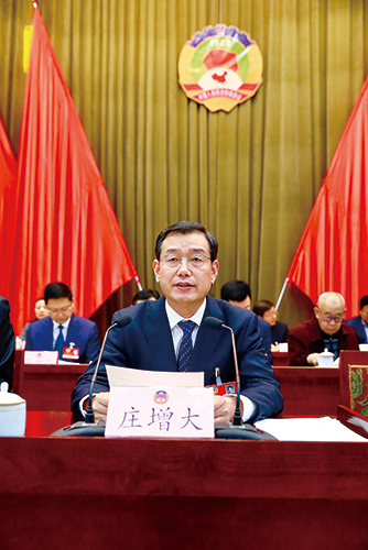 庄增大要求,要加强政治引领,坚定不移跟党走。要通过旗帜鲜明讲政治,服从服务讲原则,凝心聚力讲团结,凝聚起推进改革发展稳定的强大正能量。要聚焦中心工作,服务大局促发展。要在推动发展上出实招,在投身实践上展风采,在加强监督上求实效,推动各项改革发展稳定举措落到实处。要回应民生诉求,履职尽责惠民生。要畅通倾听民声“第一通道”,架起服务群众“连心桥梁”,巩固和谐稳定的“团结堤坝”,全力营造安定有序的良好社会氛围。要强化自身建设,转变作风强素质。要建设一流政协机关,打造一流委员队伍,切实担负起人民政协事业参与者、实践者、推进者的政治责任。让我们紧密团结在以习近平同志为核心的党中央周围,只争朝夕,不负韶华,不断凝聚政协工作强大合力,奋力开创全市经济社会发展新局面!