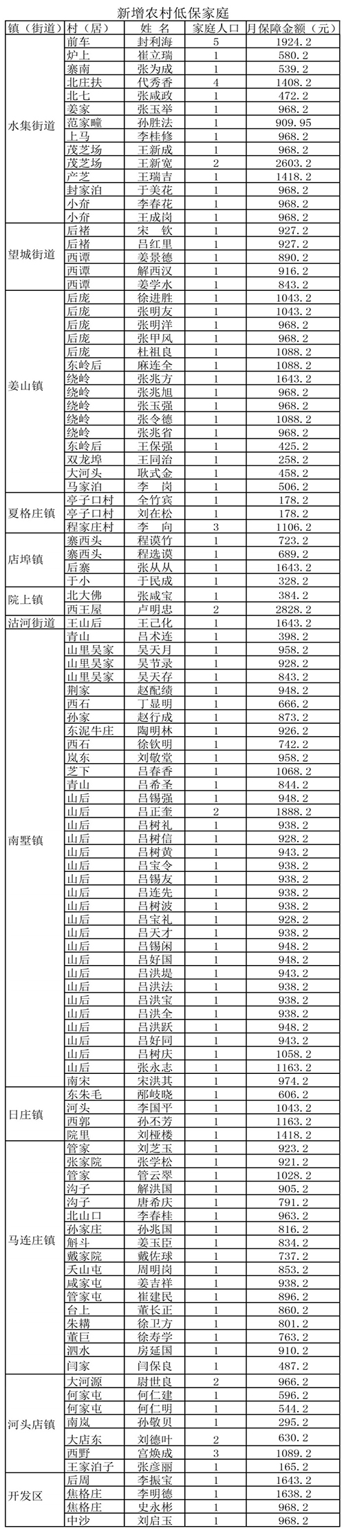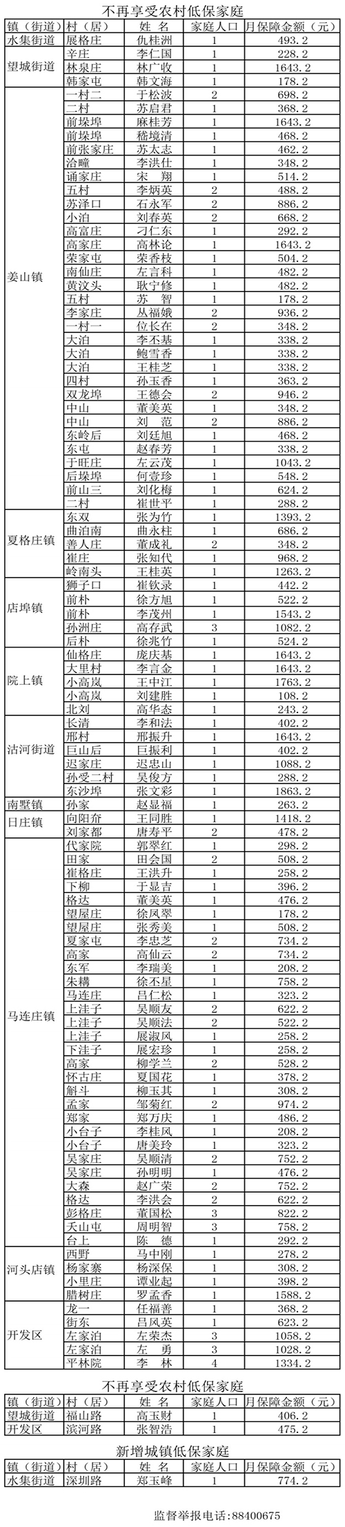 二0二0年一月份城乡低保对象调整情况公示