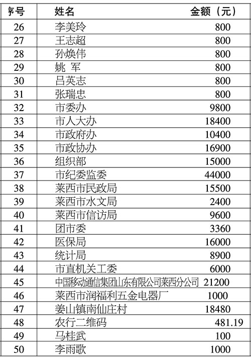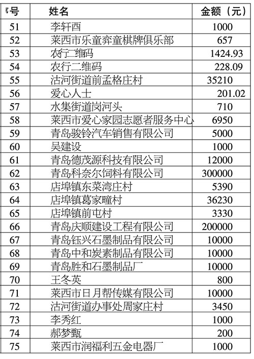 莱西市慈善总会接收新冠肺炎疫情防控捐款公示(第三期)