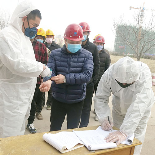 连日来,市住房城乡建设局监管处积极按照市委市政府的要求,组织有关人员深入企业解难题、抓防控,推进项目复工,做到房屋建筑工程复工和疫情防控两不误。截至目前,我市房屋建筑工程复工60个,复工率达到96.8%。图一为江苏中阳建集团员工在安兴·壹號府施工现场检测体温和登记。图二为青建集团股份公司严格按照疫情防控要求组织员工在金林四冶城市综合体项目施工。