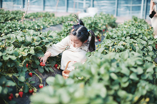 ▲沽河街道山后人家生态园的小番茄、草莓等迎来了采摘季,吸引了青岛市区的市民前来采摘、游玩。