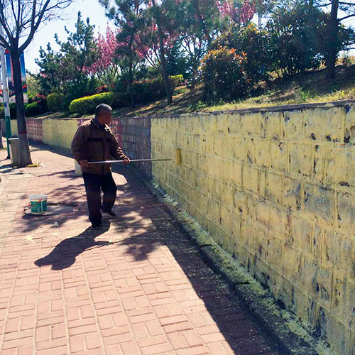 市综合行政执法局水集中队涂刷墙体喷绘广告,维护市容环境,消除视觉污染。