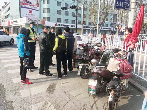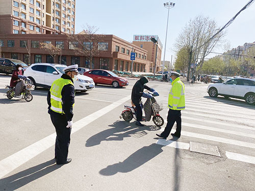 市交警大队青岛路中队对电动车违法人员进行安全教育。