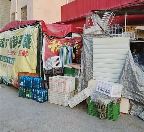 ②林语家园小区门口超市乱堆乱放占用人行道。