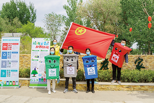 5月4日,团市委组织志愿者走进产芝村,开展以《让垃圾回家》为主题的文明宣讲活动。