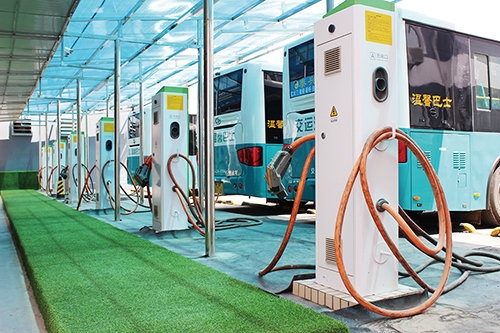 从2015年至今,交运集团在我市投放纯电动、LNG等各类新能源公交车280部,占我市公交车总数的98%。图为8路城区公交车在充电。