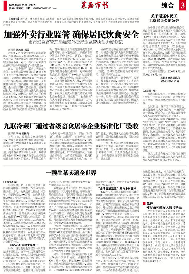 编者按:8月20日,大众日报一版刊发《莱西农村“领头雁”迈向全域专业化》...