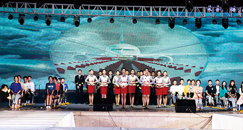 夜幕降临,广大市民在欣赏了由青岛航院组织的《乐享·云端》《爱在蓝天》等精彩节目表演以后,300架无人机依次在人民广场的上空升起,用它们绚烂的灯光和无穷的变化,以天为幕,以城为景,勾勒出最美莱西、空中客机、美丽空乘、帅气机长等璀璨图案,用科技的力量点亮莱西夜空。