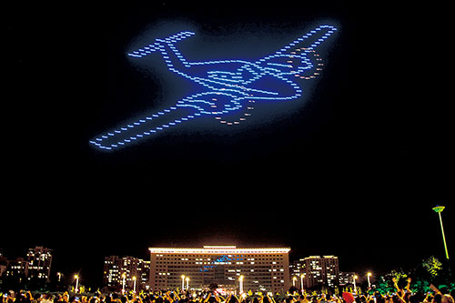 9月1日晚,为庆祝青岛航空科技职业学院成立,一场由300架无人机编队的无人机夜空表演秀在市人民广场精彩上演,引来了无数市民喝彩点赞。