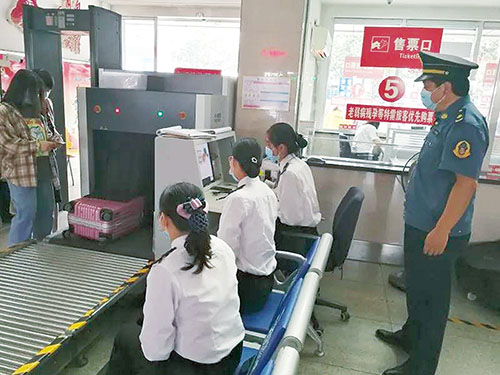 “十一”期间,市交通运输局每天安排值班人员坚守汽车站,维护车站内运输秩序。在汽车站、动车站、火车站安排疫情防控专班,执行进站人员疫情检测,落实戴口罩、亮绿码、凭身份证乘车等措施,确保执勤防疫程序规范到位、检疫防疫不落一人。每天安排执法中队全天坚守,打击非法营运车辆,整治出租市场秩序,确保群众畅通出行。