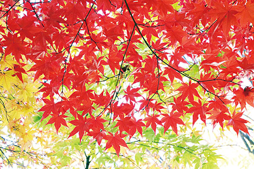 下午1时,坐上景区的大巴,我们开始入山。山路两旁偶尔飞逝而过一片片红叶林,引来游人阵阵欢呼。司机却平静地说:“这不算什么,那一山一山的红叶才叫漂亮。”果然,越往山里面走,红叶越多。目之所及,可谓漫山遍野,层林尽染,蔚为壮观。