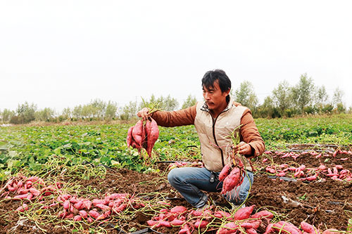 在姜山镇黄土台村,成片的地瓜叶将地面捂得严严实实,一片碧绿,两台大型收割机将地瓜从地里翻出来,个大皮红的地瓜成串地冒了出来。“在霜降以前要收获完毕,现在很多品种的地瓜都上市了。”村民孙东茂兴奋地告诉记者,今年租种的100亩“西瓜红”地瓜喜获丰收,每亩纯收入在1500元左右。