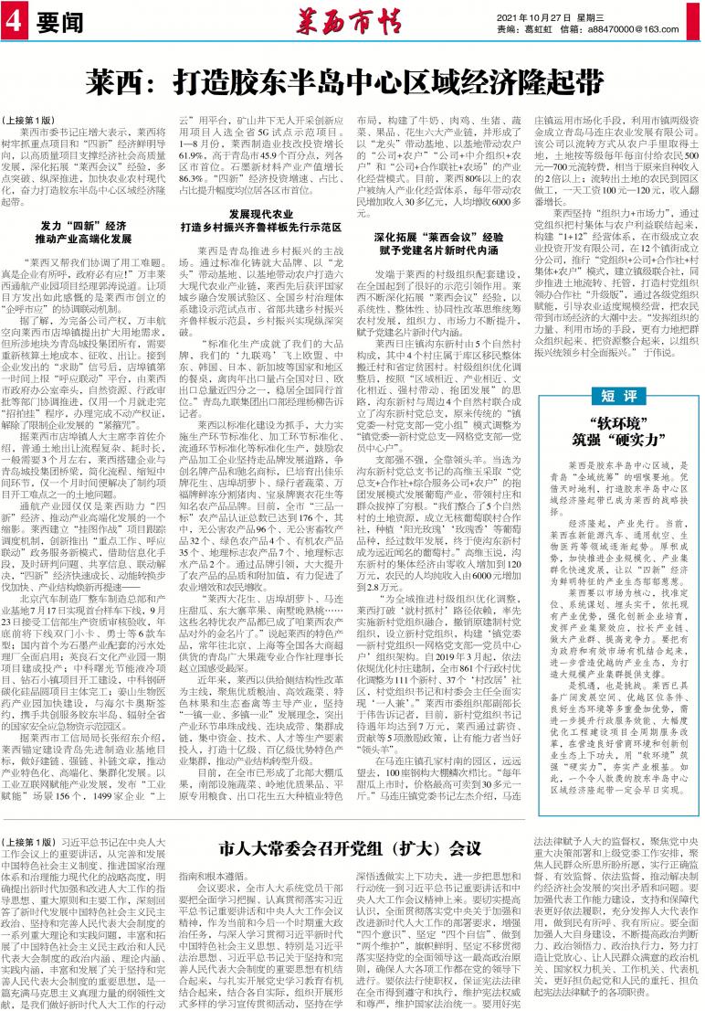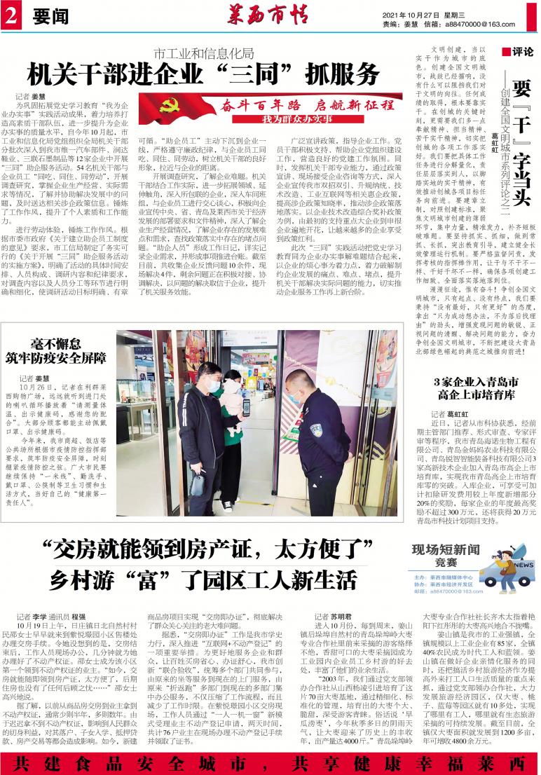 编者按:10月25日,《青岛日报》一版头条刊发...