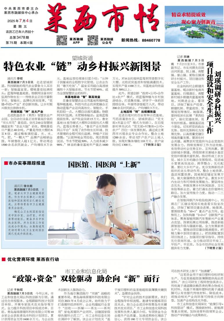 莱西融媒7月3日讯 走进望城街道,科技赋能的现代农业景象令人耳目一新:智能温室里,樱桃番茄挂满枝头;...