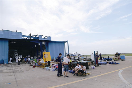 珠海九洲机场多架直升机在台风中严重受损,直升机仓库顶盖也被台风掀开。保险公司正在协助救援公司逐步查清受损情况。