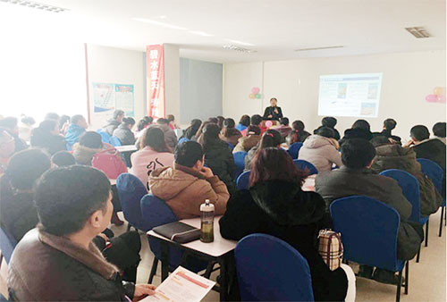 为更好地更全面地为每一位参保人带去保障,让人们可以幼有所学,中有所爱,老有所依,太平洋保险有限公司莱西支公司于2月11日举办大型创业说明会。图为资深讲师正在…
