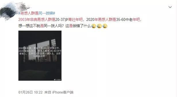 “2003年非典易感人群是青壮年吧?今年新型冠状病毒肺炎易感人群是中老年人吧?那不是一批人吗,多大仇啊,追杀了这代快20年……”看到这个段子,很多人一笑置之,但也有人表示:“好像有一定道理啊。”事实究竟如何呢?