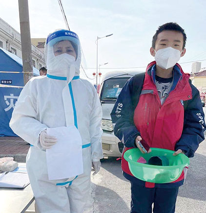 刚开始的几天,王松青到封控小区给居民检测核酸,从小区大院排队检测到爬楼入户检测,每天只睡两三个小时。她带着烟台驰援医生入户检测时,爬到一户居民家门口后扑通歪倒在台阶上,幸好随行医生扯住了她,没有发生意外。然而第二天早晨5点,王松青又接到录入核酸身份信息的指令,到达录入办公区后,同事发现她左眼白出血。为了不耽误工作,她硬是坚持工作到下午4点才匆匆去了眼科医院检查,经诊断,是劳累引起的眼角膜下毛细血管出血,医生建议休息,王松青却拒绝了。她带着医生给开的三只眼药水,回到单位继续跟同事们一起奋斗。