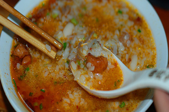 第二个要推荐是兴义三合汤,很多没有到过兴义的人都会问,三合汤是什么?三合汤是兴义最独特的特产,主要是在糯米饭内放适量当地产的四季豆米,加酥肉片、酱油、醋、辣椒等佐料,掺入鸡汤或猪脚汤,煮得半稀半烂,连汤带水一大碗,味道十分鲜美。