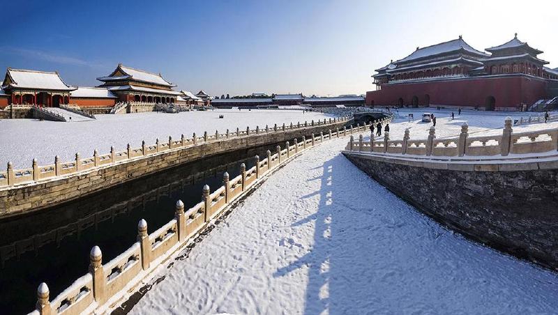 中国明清两代24位皇帝的皇宫,旧称紫禁城,是世界现存最大、最完整的木质结构的古建筑群。故宫的建筑沿着一条南北向中轴线排列并向两旁展开,南北取直,左右对称;依据其布局与功用分为“外朝”与“内廷”两大部分。游览故宫四季皆宜,即使是寒冷的冬季,故宫的雪景也是美不胜收的。