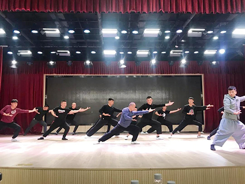 中国戏曲学院衣麟老师、钱龙老师给男生示范动作。