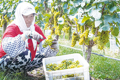 院上镇九顶庄园葡萄种植区一片丰收的景象。 高欢欢 摄
