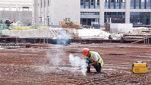 日前,记者在莱西北站站前广场项目现场看到一片繁忙景象,建设工地塔吊林立,100多名建筑工人同场施工,焊接声、切割声、锤打声与机器轰鸣声,正奏响莱西北站建设的“进行曲”。