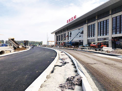 目前人行集散广场、地下停车场主体基本完工,正在进行人防区域钢筋绑扎工序和站前疏散路的水稳基层铺筑,整体工程预计在11月中旬全部完工。整个项目建筑面积17196平方米,主要包括房前铺装和人行集散广场、地下停车场和站前道路,广场相比以前更趋向于智能化,极大便利市民出行。
