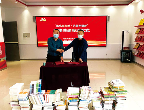 活动现场,市群众文化服务中心图书馆党支部与小雨滴社会工作中心党支部举行党建共建协议签约仪式,就“共建实干”“微心愿·共圆幸福梦”党建共建协议进行签约,进一步提升党建工作水平,达到“资源共享、优势互补、互相促进、共同提高”的目标。图书馆党员干部和志愿者为河头店镇留守儿童送去了290册学生必读书目、经典文学、世界名著等图书(价值9700元),开阔留守儿童的学习视野,丰富他们的课外知识。必读书目的捐赠减少了学生家长的教育开支,减轻了家庭经济负担。