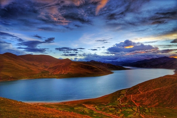 站在山峦、蓝天、云朵之间,就这样与羊湖相望。那一刻,我竟连呼吸都遗忘,似飞过千年,飞入湖水,时间滴答滴答,忘了掠过身边的风,忘了曾遇到过的美丽姑娘。原来…