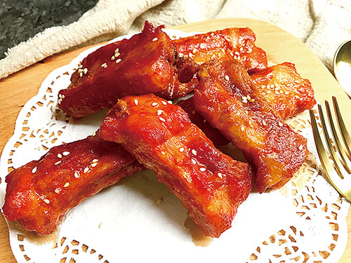 备料:排骨、盐、白糖、陈醋、生抽、老抽、料酒、花椒粒、香叶、大料 1、将排骨清洗干净后绰水。 2、煮锅加入适量水、料酒、花椒粒及大料,放入排骨大火烧开后…