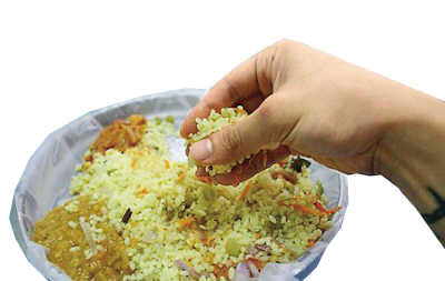 在非洲很多地方,吃饭不用桌椅,也不使刀叉,更不用筷子,而是用手抓饭。 吃饭时,大家围坐一圈,一个饭盒和一个菜盒放在中间。每个人用左手按住饭盒或菜盒的边沿,…