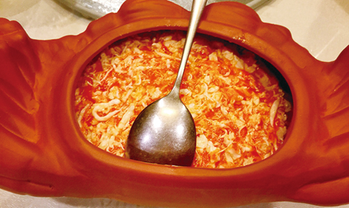 这道菜不仅外观有蟹黄的的样子,吃起来味道也很相似,所用的材料却只是鸡蛋和胡萝卜,与蟹无关。此菜做法关键是鸡蛋入锅前不能打散,这样炒出来蛋清和蛋黄就不会完全…