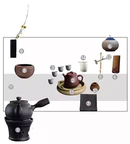 茶品万物,茶席的布置,也让原本安静的茶汤在空间里流动了起来。 看这张长方形席,以右手泡茶的标准茶席?,名称分别为: 1. 煮水器(能拿来煮水冲泡的烧水器具…