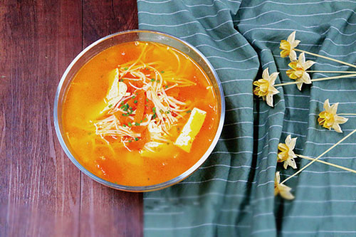 【制作原料】:嫩豆腐1盒,色拉油 1汤匙,西红柿 2个,盐 适量,白糖(少许),味精(少许),香菜 1棵,胡椒粉(少许),芝麻油 1汤匙 【制作方法】: