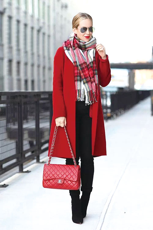 彩色格纹搭配同色系大衣的效果也非常出众,只要你的大衣颜色与格纹围巾中的某种色彩元素相呼应,就能够完美地打造出整体感。