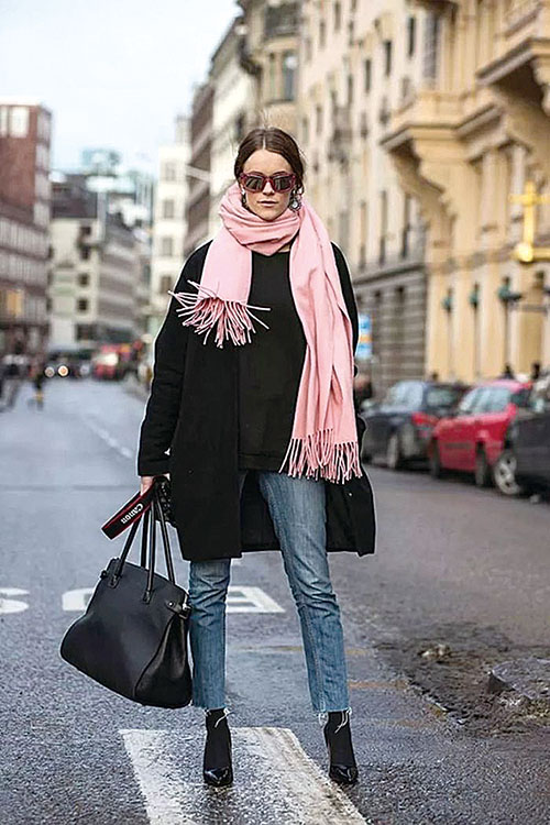 拼色围巾也是非常抢眼的新颖单品,活跃的颜色碰撞最能丰富整体的看点了。