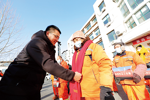 市总工会筹集资金10万元,为我市长期坚守户外岗位的环卫工人、电力抢修班、自来水抢修班及金莱热电抢修班的一线工人送去羊绒围巾676条,手套1300多副。…